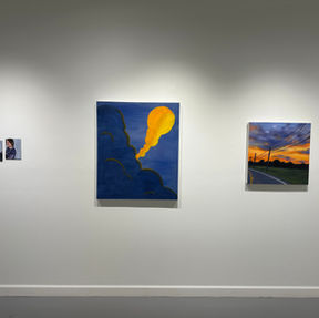 Through paintings of highly saturated sunsets, Noel explores the tension between human presence and nature. Subtle man-made structures within her paintings highlight the disruptions of nature within otherwise calm environments.
