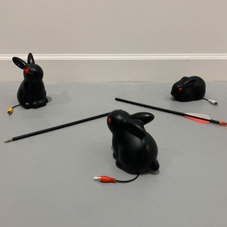 Sullivan’s work explores the evolving relationship between human behavior and technology in the midst of our contemporary digital age. With the blurred line between reality and technology being the place Sullivan finds themselves navigating, digital ethics are not incredibly concrete and are explored through traditional media, found-object sculpture, and video installations. Utilizing a multimedia approach fueled by internet pop culture and user generated content, Sullivan invites viewers in an unconventional stance surrounding technologies suffocating hold on humanity’s daily lives, and to reflect on their own relationship with digital systems.